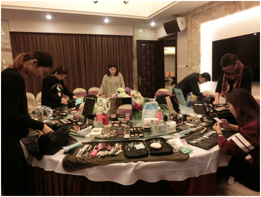 【校园快讯】2015年1月25日星期日,東田之星时尚89期同学为北京影响力商超新年晚会全体演出人员化妆造型。到达现场之后同学们在化妆间开始认真摆台,以专业的态度感染了每一位演出者,语言不是沟通的障碍,信任和默契成为了最好的润滑剂。同学们以饱满的热情,专业的态度,娴熟的技艺以及团队合作,圆满的完成此次实践活动,获得了演出方的好评和嘉奖。感谢学校为我们提供这次实践活动,丰富了同学们的化妆经验,提升了同学们的化妆技术,为未来的工作提供了难得的宝贵经验。