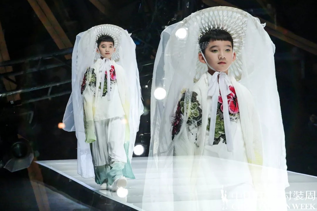 2020SS拂柳垂杨·冯三三少儿高级定制发布会发布主题为《行云流水》。江南烟雨,泛舟西湖,饮清晨朝露,观夜幕拂柳垂杨。本季发布会以江南烟雨为主题发散方向,融合水墨、云烟、晕染、吊染、刺绣、珠绣等工艺手法,将不同色彩的晕染形式结合复古的立体造型,使整体更具艺术特色。