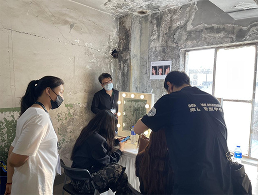 周彩班的同学,从台前走进幕后,感受时装周热闹又紧张的后台筹备环节,观察着化妆师紧张又有序的工作。