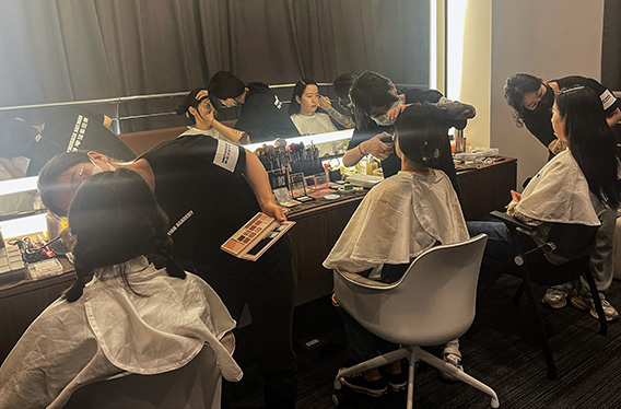 本次联谊活动所有参与的人员妆发造型均由东田造型学校的3名化妆师全程打造,不仅为现场的小姐姐们打造了古风妆发,还为每一个人增添上了精致的花钿,让整体效果更具古韵风情,获得了现场的一致好评。