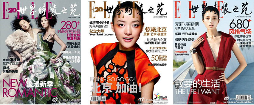 《时尚芭莎》《时尚先生》《新娘》《风度》《GQ》《ELLE》《ELLEMAN》《嘉人》《型男志》《时尚好管家》《风尚志》《大周末》《悦己》《精品》《时装》《25安》《健康女性》《男士健康》等