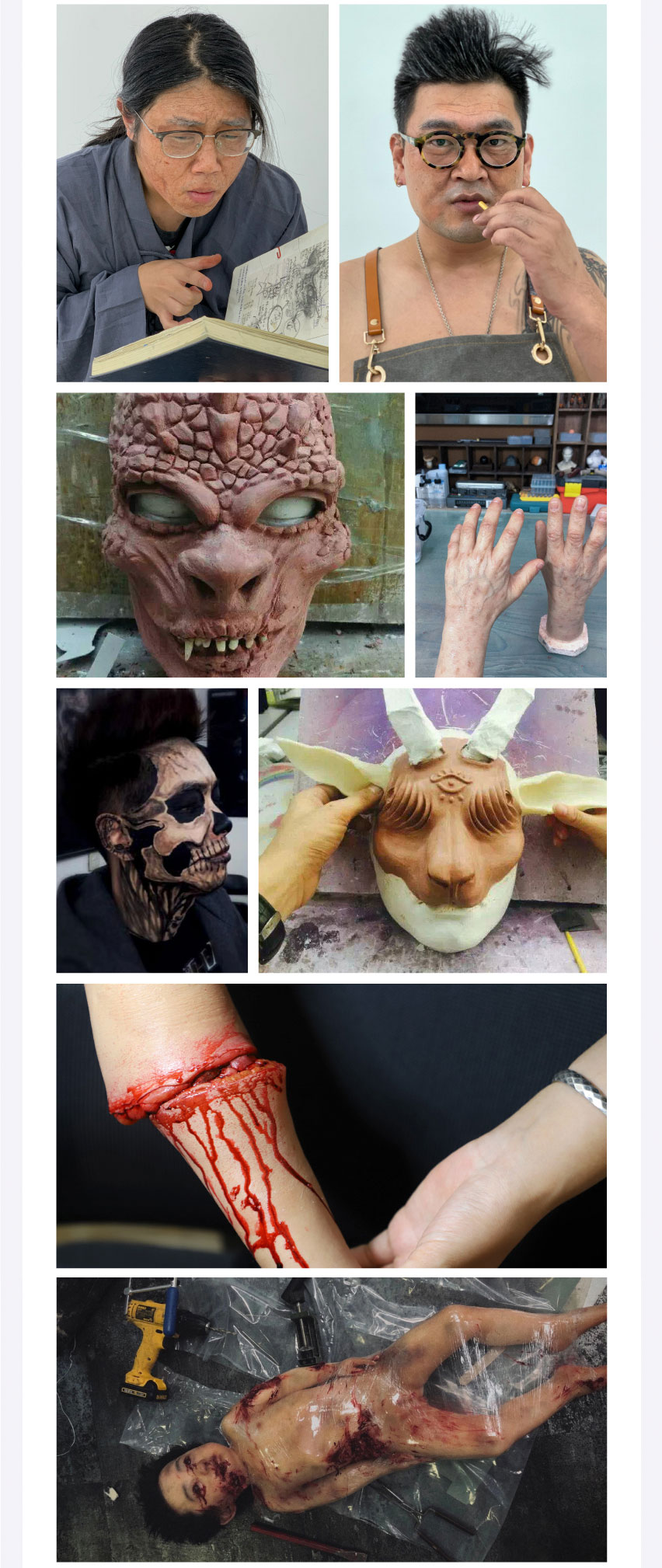 色彩基础学 光头套制作 基础老年妆 喷枪上色 写实光头套 硅胶毛发处理 酒精油彩上色 创意光头套 整体雕塑 零件假皮制作 发泡乳胶制作 妆面假皮上色 人物造型道具 特效化装整体形象造型
